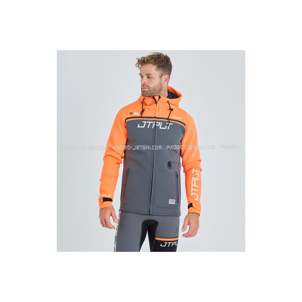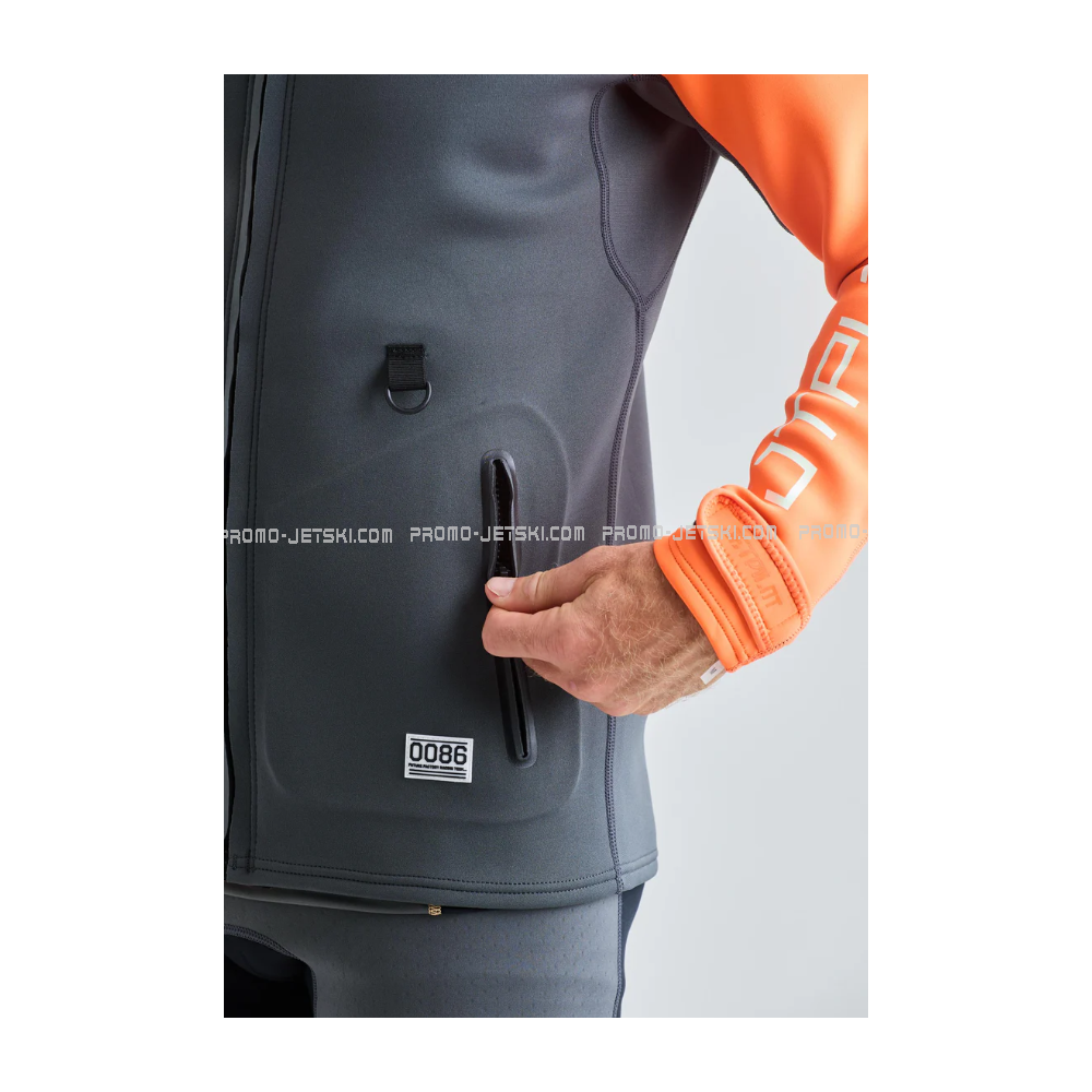 JETPILOT neoprene Tour Coat jacket, RX Vault model in Charcoal and Orange