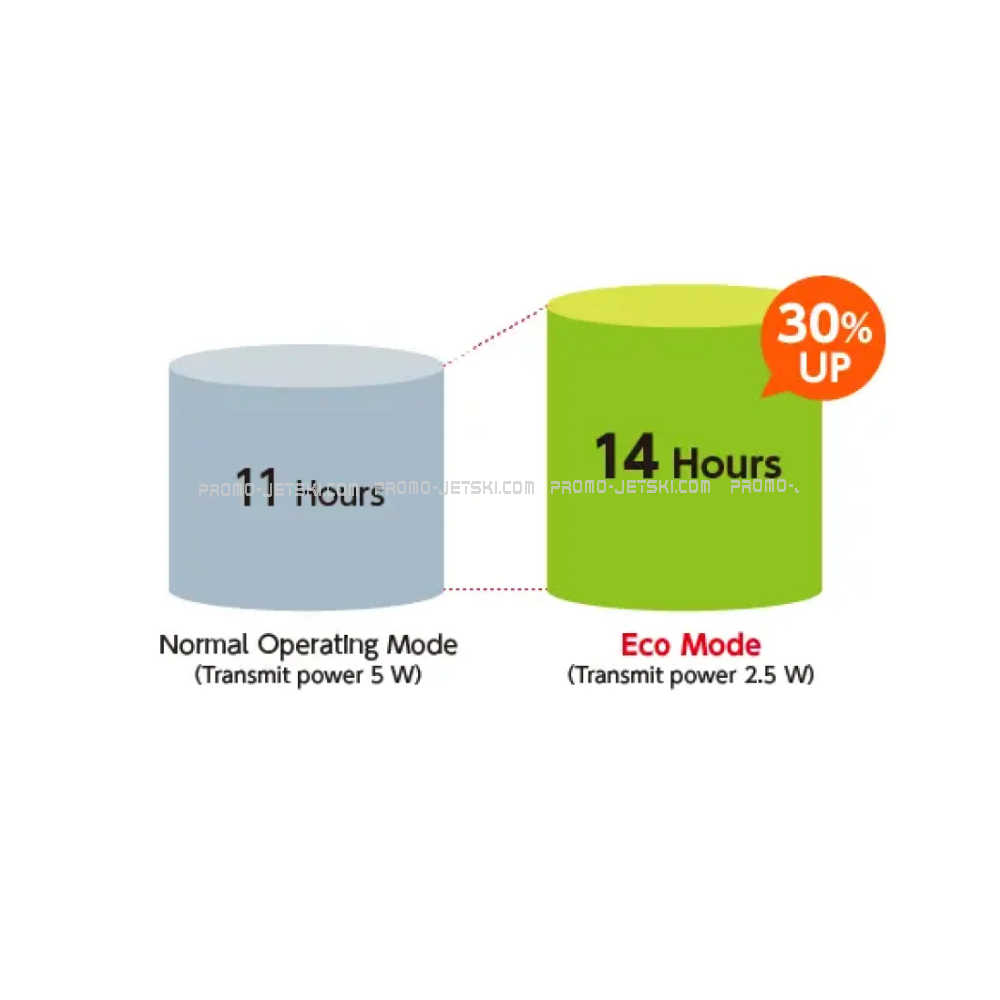 Its large backlit screen (33 x 23 mm) allows easy viewing of information such as channel, battery level icons, volume, dual watch, etc.