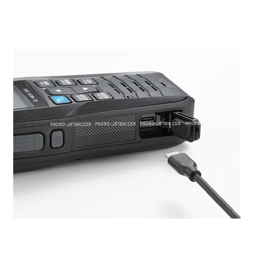 The IC-M25EURO EVO is equipped with a standard USB-C socket allowing charging from a cigarette lighter cable, phone charger, etc.