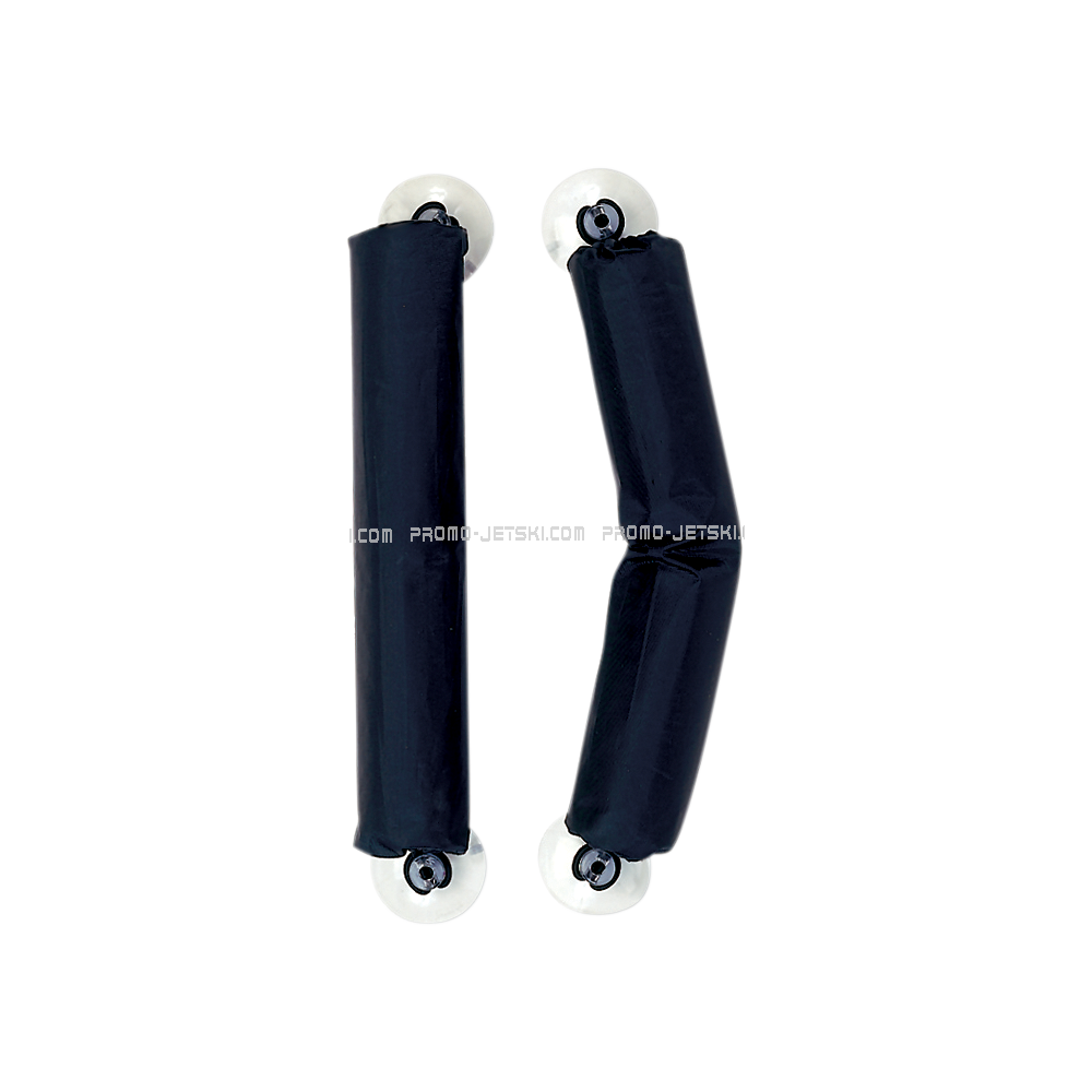 The fenders are 8 cm wide and 46 cm long, are covered in nylon and attach to jet skis using two large suction cups or attach under the hood and seat.