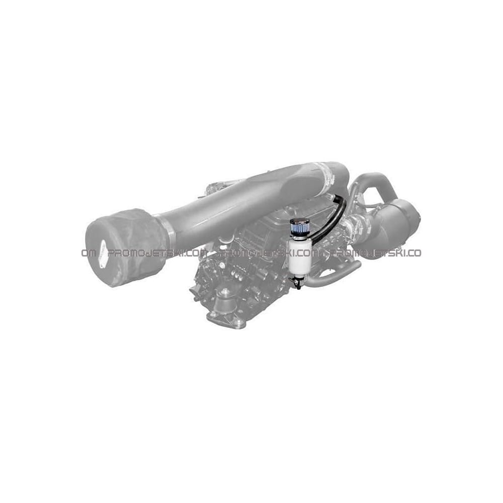 Easy to install, the oil breather/reservoir removes fuel and oil vapors from the engine air intake. It increases horsepower by eliminating the engine's need to burn relatively non-combustible oil. It also improves intercooler efficiency by preventing oil sludge buildup, which reduces thermal efficiency. Excess oil vapors are routed to our translucent recovery canister where they condense and collect for occasional draining via an integrated drain tap valve. The kit includes the K&N breather and Sea-Doo mounting bracket, along with all necessary hardware and installation instructions.