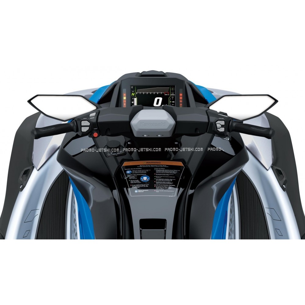 The Kawasaki Smart Reverse with Deceleration (KSRD) system electrically activates reverse gear. Controlled by a thumb switch on the right handlebar, it allows for one-handed thrust control and helps slow the Jet Ski down.