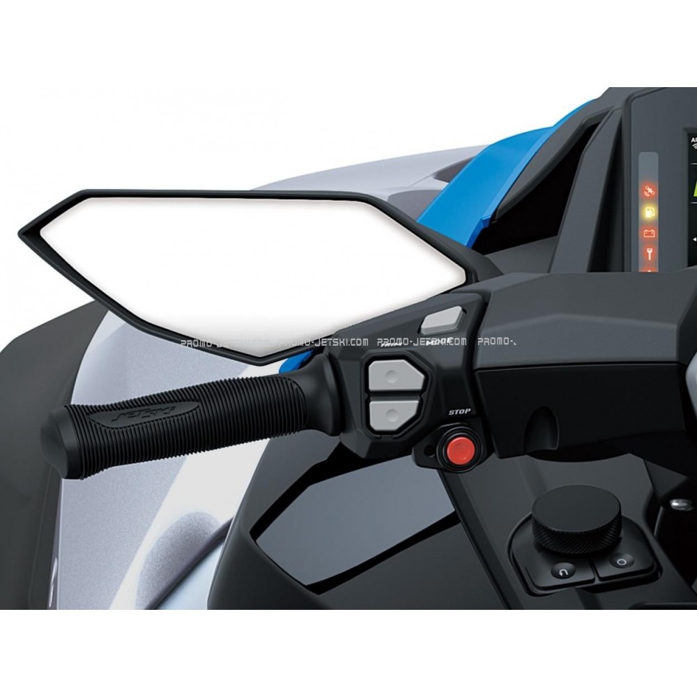 The Kawasaki Smart Reverse with Deceleration (KSRD) system electrically activates reverse gear. Controlled by a thumb switch on the right handlebar, it allows for one-handed thrust control and helps slow the Jet Ski down.