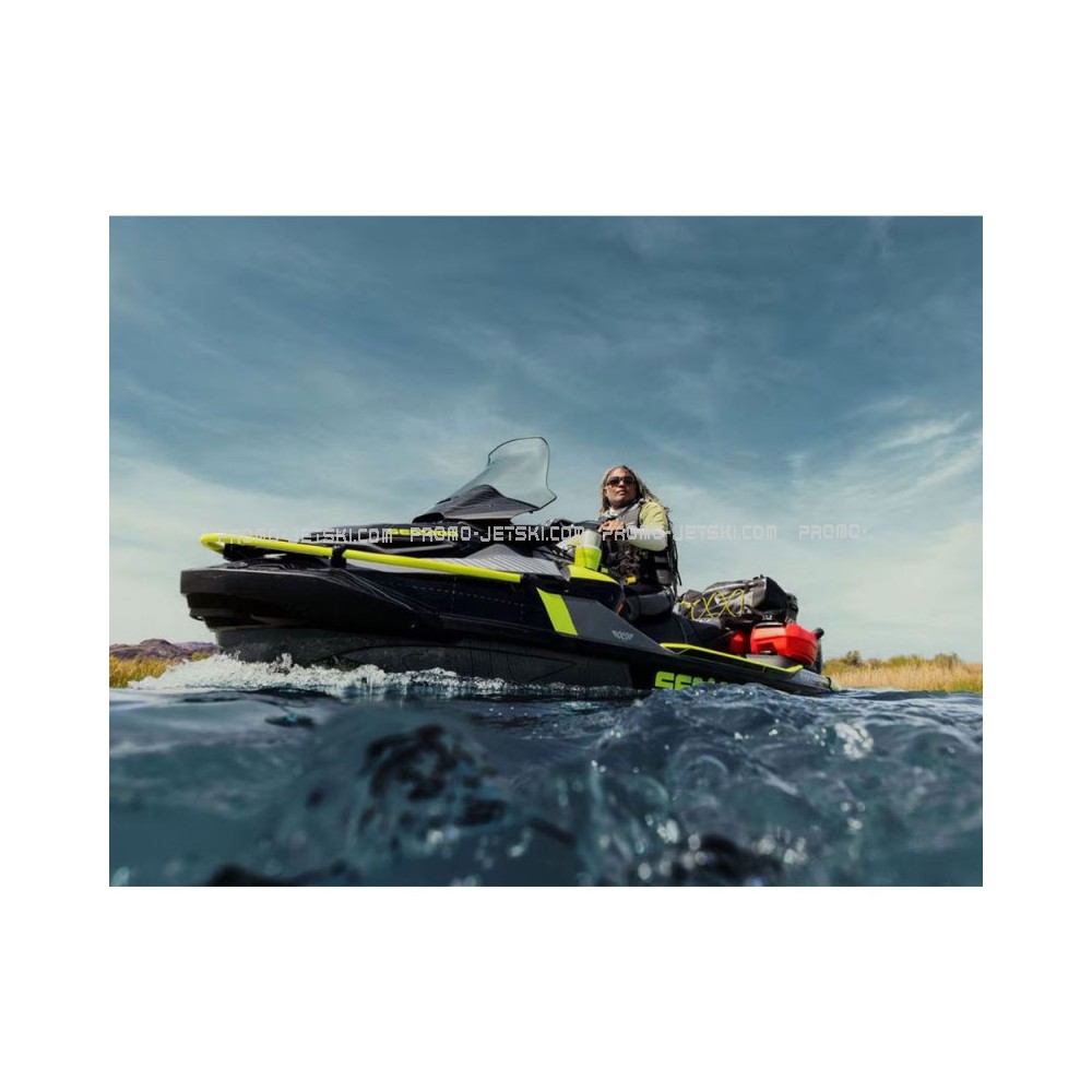 An industry first, the Sea-Doo Touring Windshield effectively protects against wind, water spray, and the elements. By reducing fatigue due to wind pressure and noise, it allows you to fully enjoy your long outings at sea.