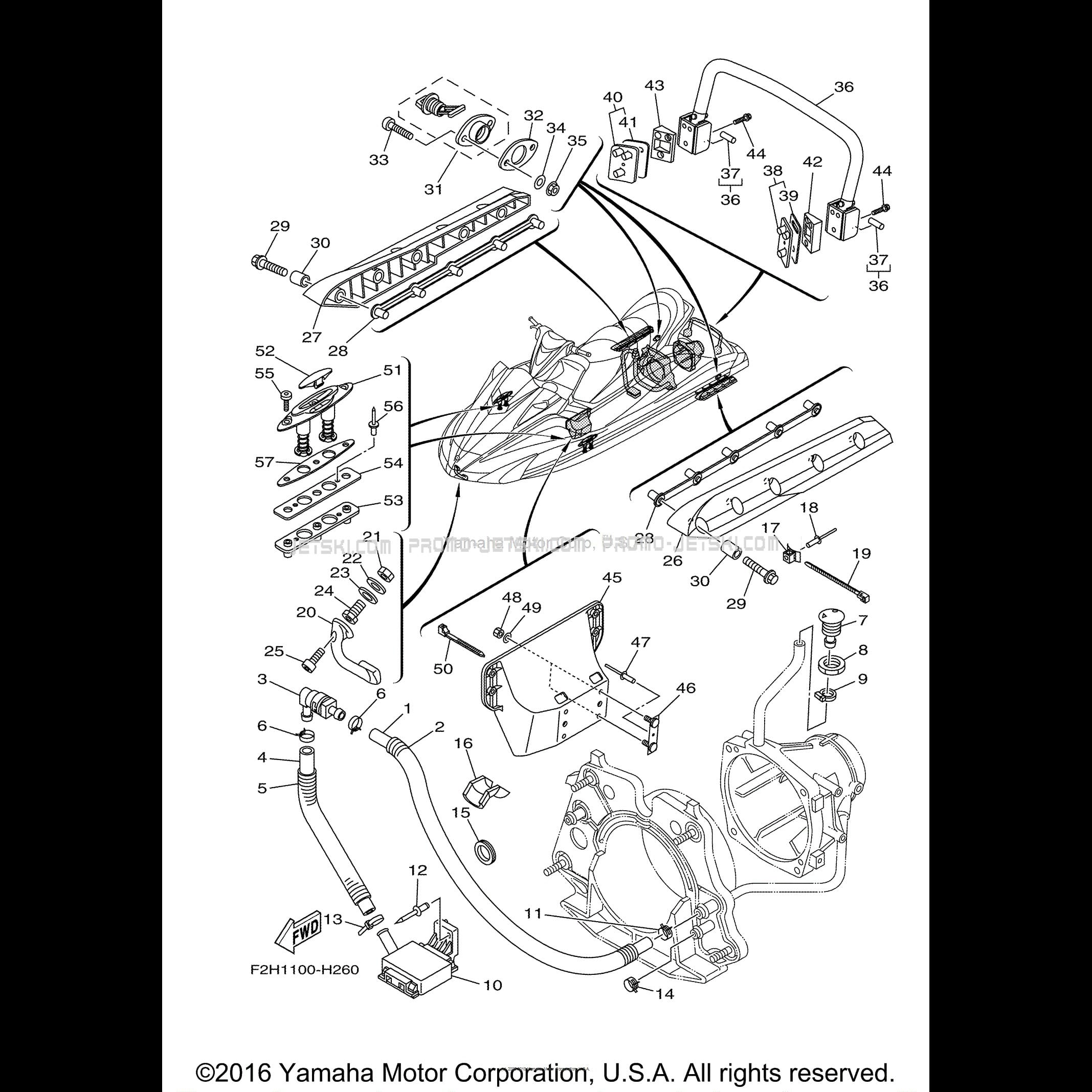Below, find all references of original and spare parts for HULL & DECK for your Yamaha FX CRUISER HO - FY1800AK - 2011 2011 WaveRunner and available at Promo-jetski.com.