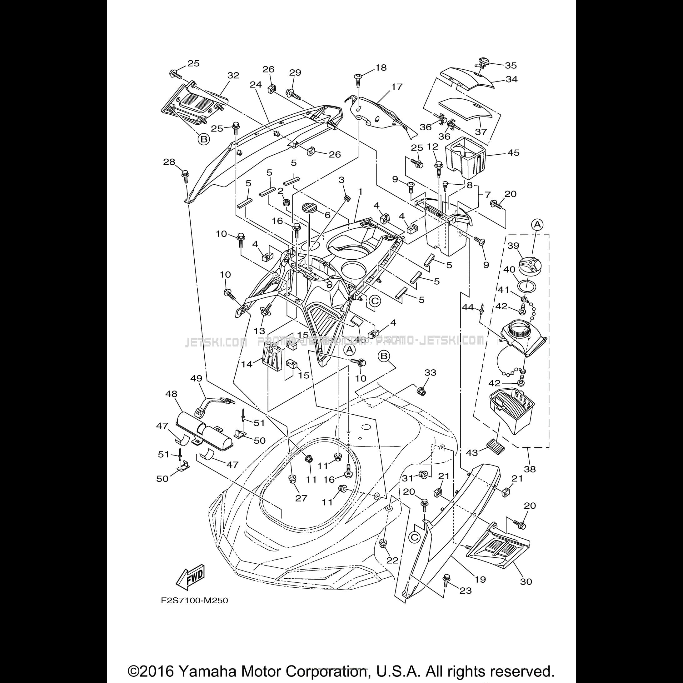 Below, find all references of original and spare parts for ENGINE HATCH 1 for your Yamaha WAVERUNNER FX HO - FB1800M - 2013 2013 WaveRunner and available at Promo-jetski.com.