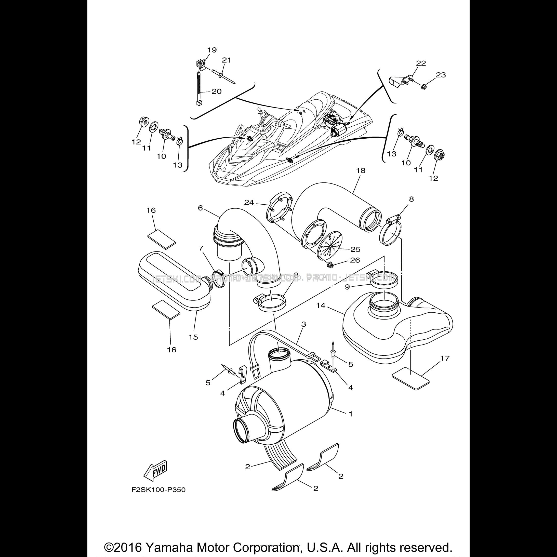 Below, find all references of original and spare parts for EXHAUST 3 for your Yamaha WAVE RUNNER FX SHO - FA1800P - 2015 2015 WaveRunner and available at Promo-jetski.com.