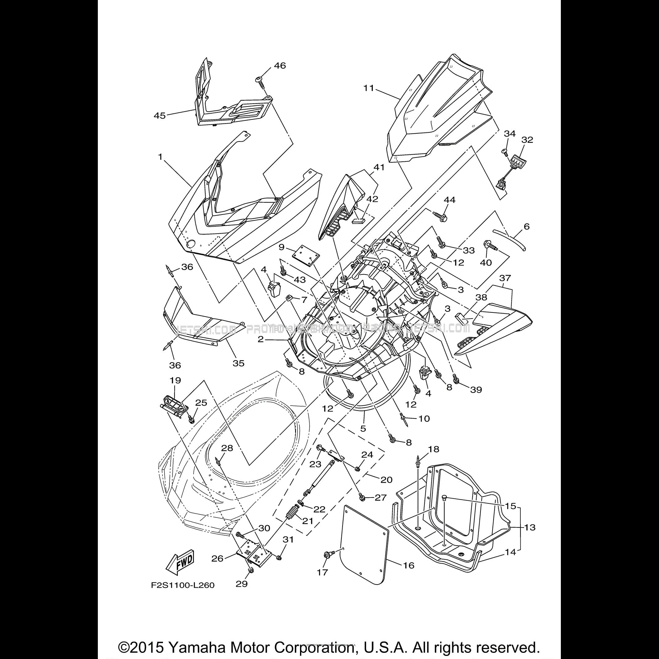 Below, find all references of original and spare parts for ENGINE HATCH 2 for your Yamaha FX CRUISER HO - FB1800AR - 2016 2016 WaveRunner and available at Promo-jetski.com.