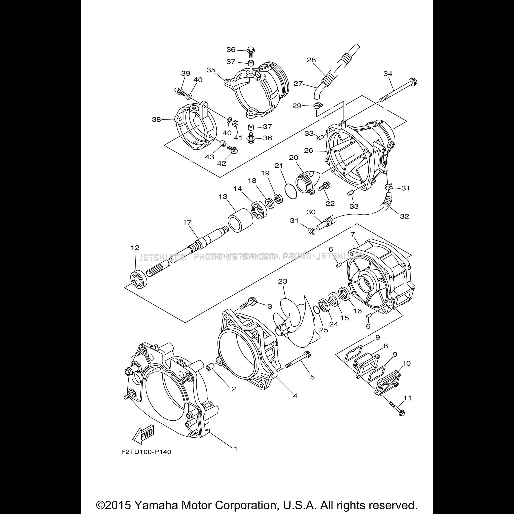 Below, find all references of original and spare parts for JET UNIT 1 for your Yamaha FX CRUISER HO - FB1800AR - 2016 2016 WaveRunner and available at Promo-jetski.com.