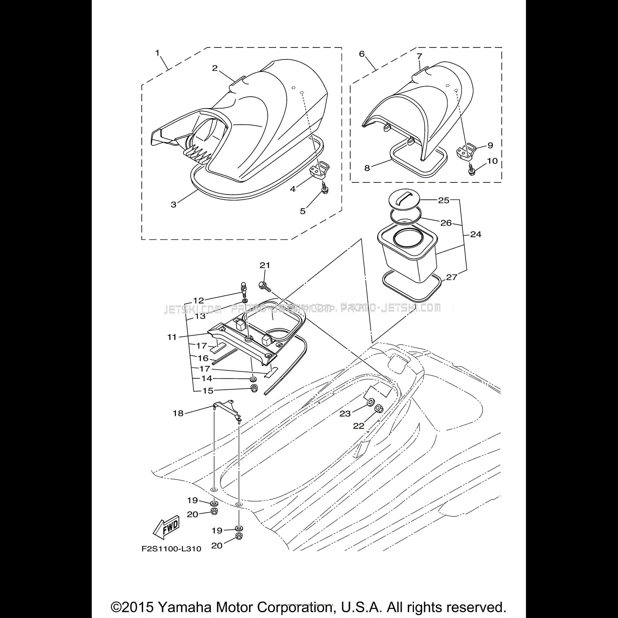 Below, find all references of original and spare parts for SEAT & UNDER LOCKER for your Yamaha FX CRUISER HO - FB1800AR - 2016 2016 WaveRunner and available at Promo-jetski.com.