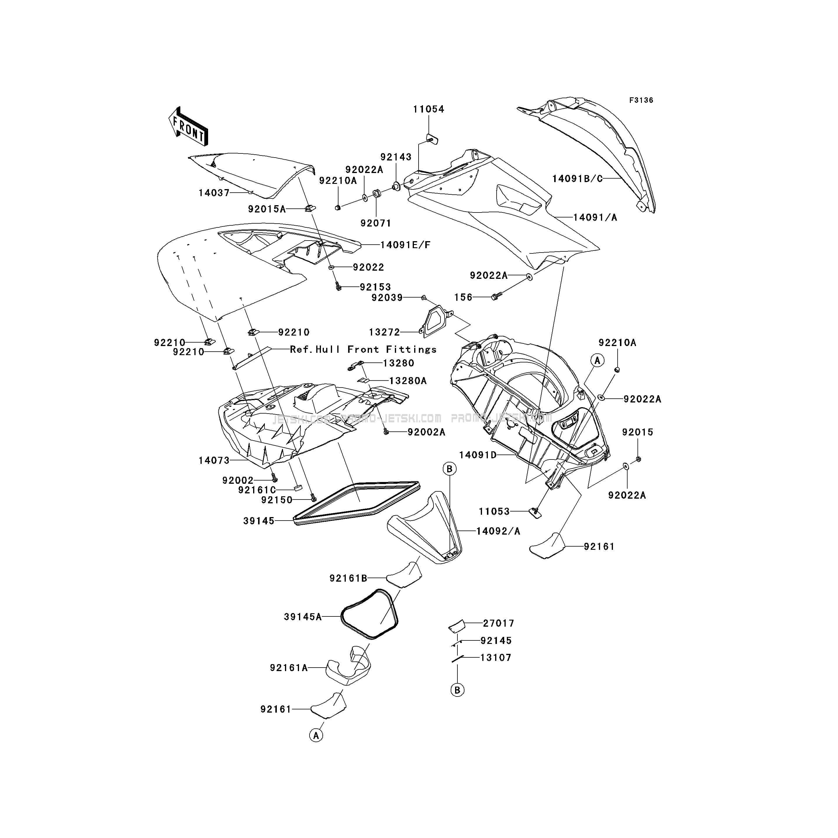 Below, find all references of original and spare parts for Hull Middle Fittings for your Kawasaki Ultra 260LX 2009 and available at Promo-jetski.com.