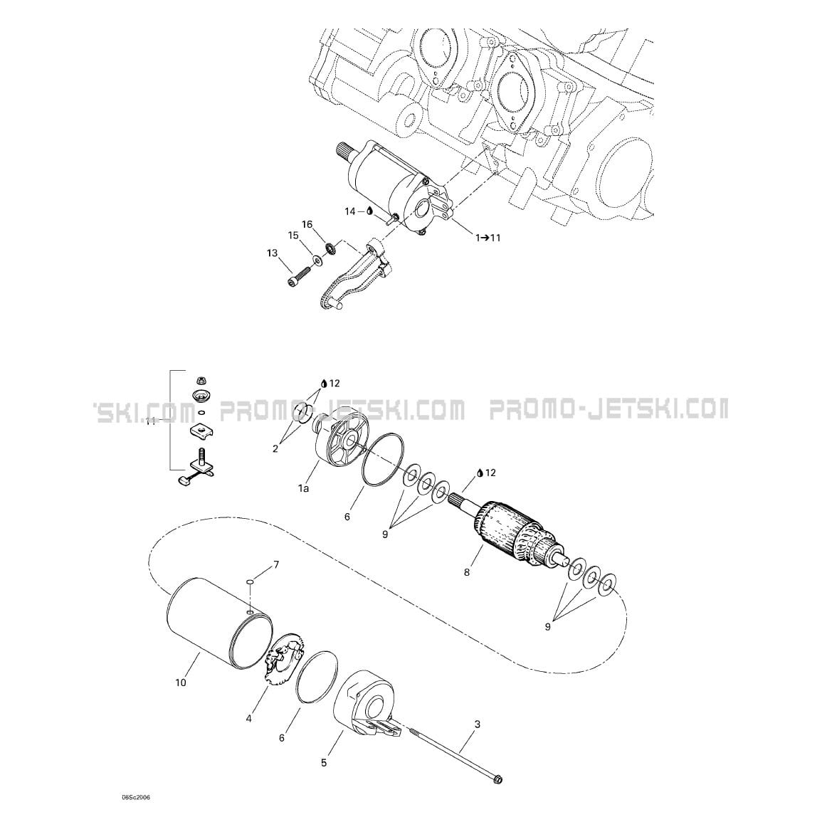 Below, find all references of original and spare parts for 04- Starter for your Sea-Doo GTX, 5653 5669 5544 5545, 2000 2000 and available at Promo-jetski.com.