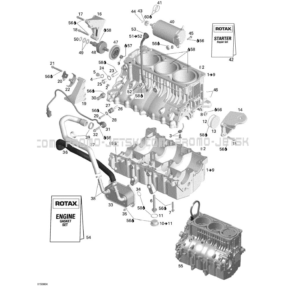 Below, find all references of original and spare parts for 01- Engine Block for your Sea-Doo GTX 4-TEC, WAKE, 2006 2006 and available at Promo-jetski.com.