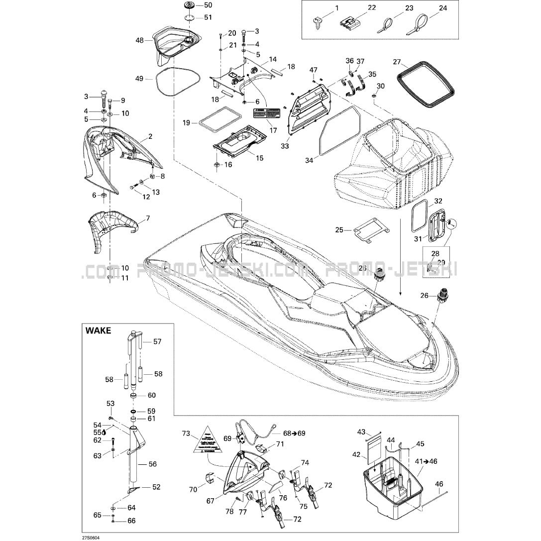 Below, find all references of original and spare parts for 09- Body, Front View WAKE for your Sea-Doo GTX 4-TEC, WAKE, 2006 2006 and available at Promo-jetski.com.