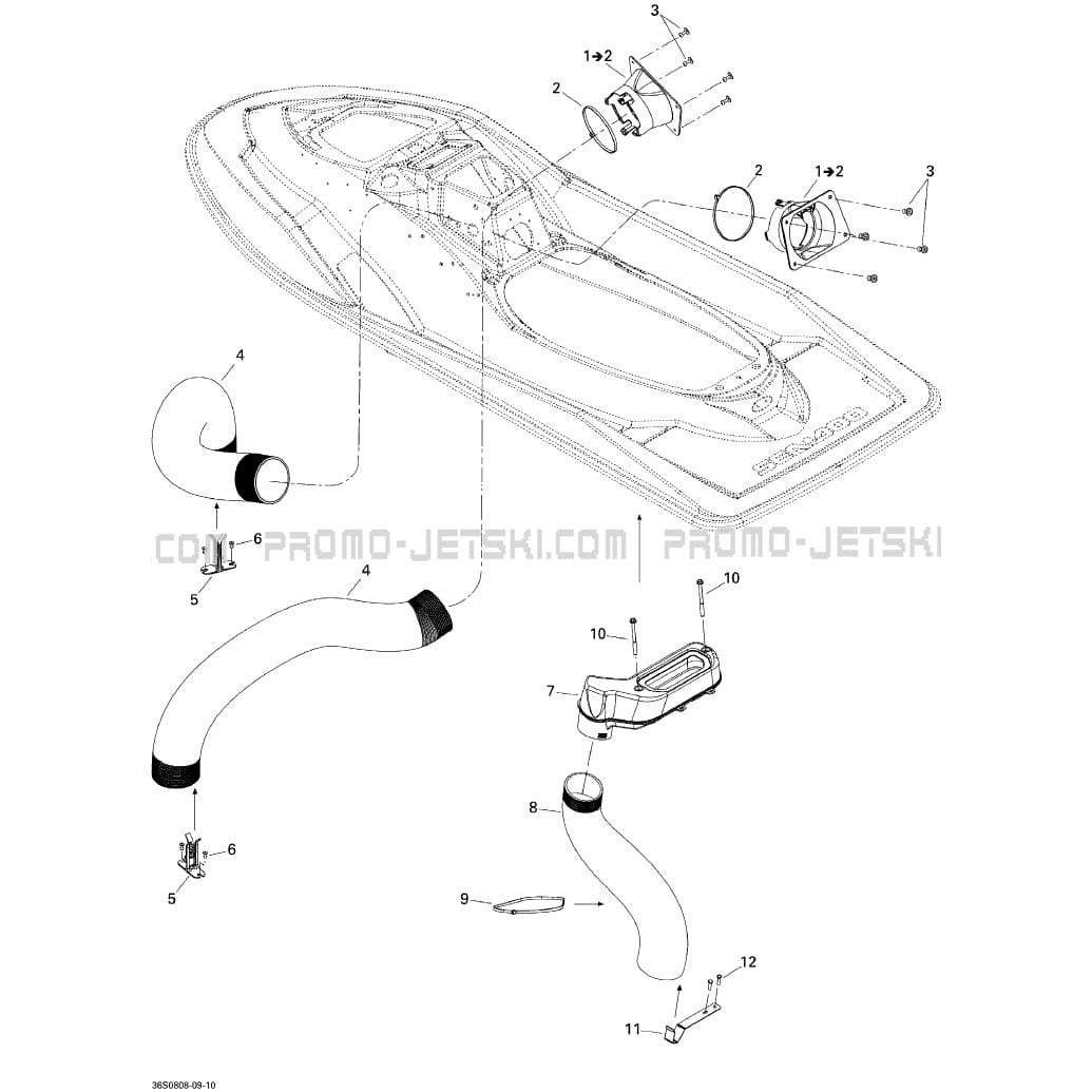 Below, find all references of original and spare parts for 09- Ventilation for your Sea-Doo RXP 215, 2008 2008 and available at Promo-jetski.com.