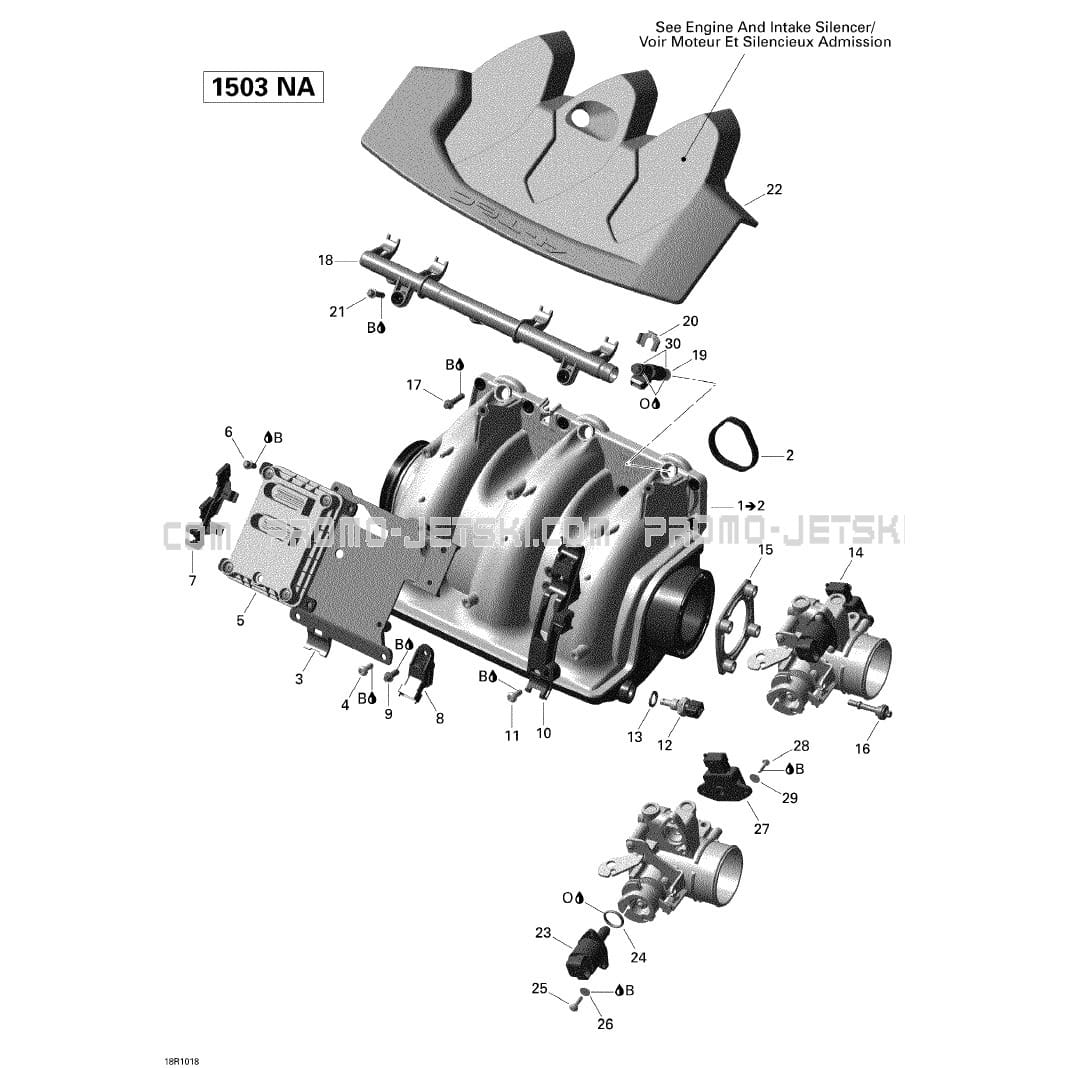 Spare references for 02- Air Intake Manifold And Throttle Body V1 of GTI SE 155, 2010 are generally delivered within the time indicated, however, and depending on certain parts for jet ski Sea-Doo, we draw your attention to the supply times as we are dependent on Sea-Doo and we always do our best to have the parts of your Sea-Doo GTI SE 155, 2010 02- Air Intake Manifold And Throttle Body V1 delivered to you as soon as possible. We also draw your attention to the fact that Sea-Doo can at any time provide us with a different replacement part number compatible with your 02- Air Intake Manifold And Throttle Body V1 of GTI SE 155, 2010.