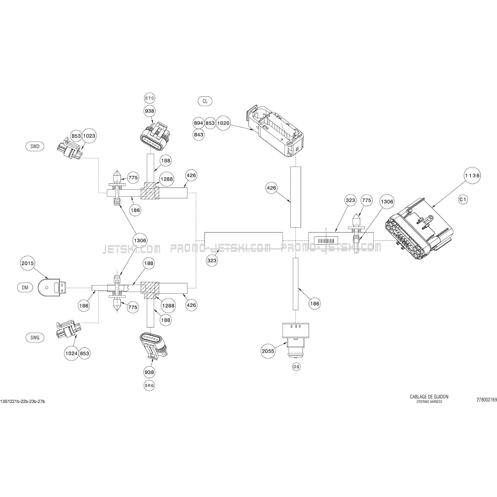 As soon as you place your order, we will send you your original or replacement references for your 10- Electrical Harness Steering for GTI SE 155, 2012 (30CA, 30CB) Sea-Doo as soon as possible or we will place the order directly with Sea-Doo.
