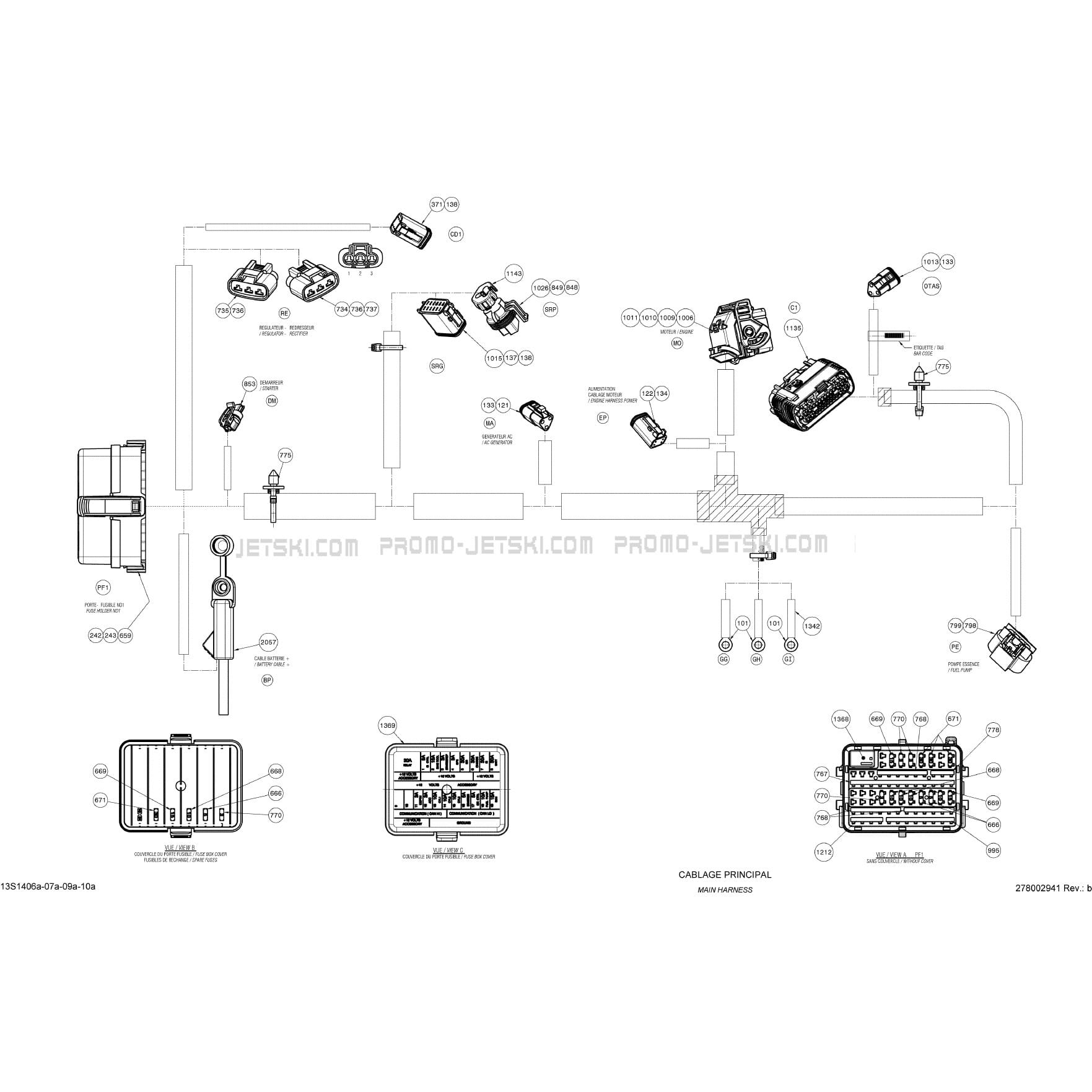 Below, find all references of original and spare parts for 10- Electrical Harness Main Harness_13S1406a for your Sea-Doo RXT-X 260 & RS. 2014 2014 and available at Promo-jetski.com.