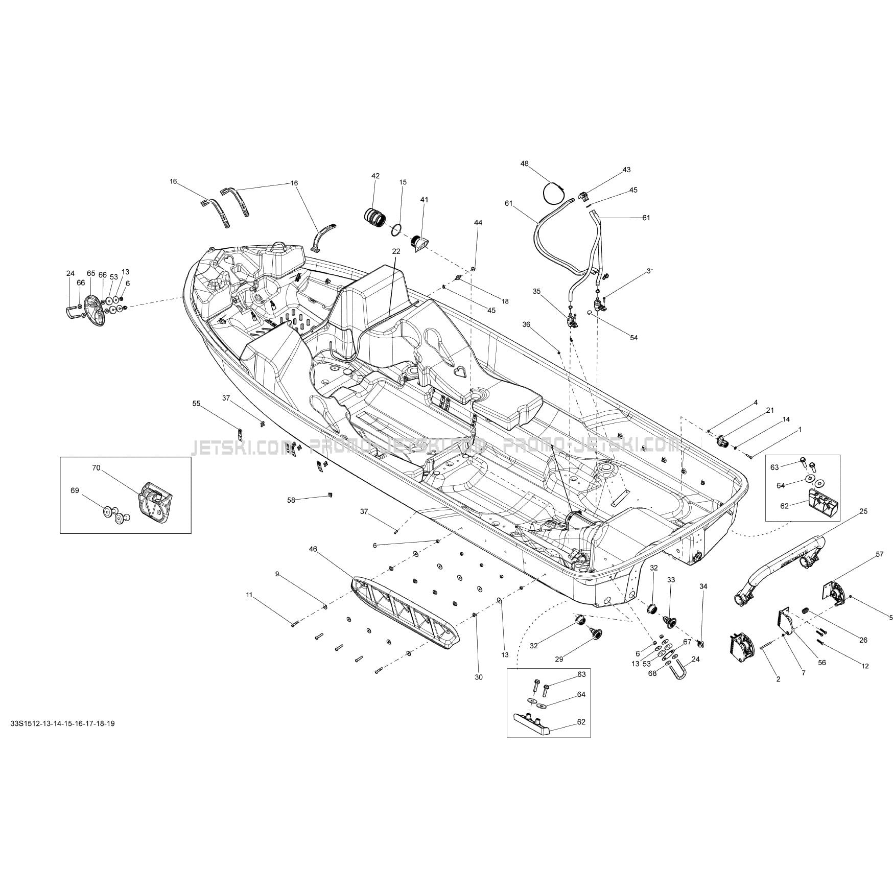Below, find all references of original and spare parts for 09- Hull ACMP_33S1516 for your Sea-Doo GTI LTD 155, 2015 2015 and available at Promo-jetski.com.