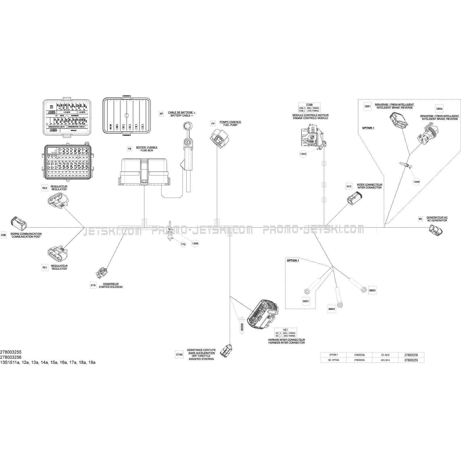 Below, find all references of original and spare parts for 10- Electrical Harness _13S1516a for your Sea-Doo GTI LTD 155, 2015 2015 and available at Promo-jetski.com.