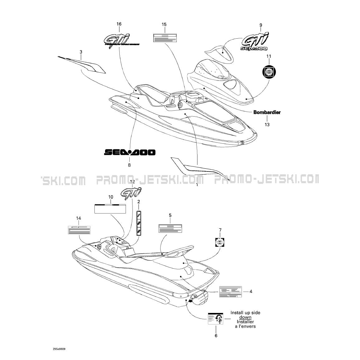 Below, find all references of original and spare parts for 09- Decals for your Sea-Doo GTI, 5836 5841, 1998 1998 and available at Promo-jetski.com.
