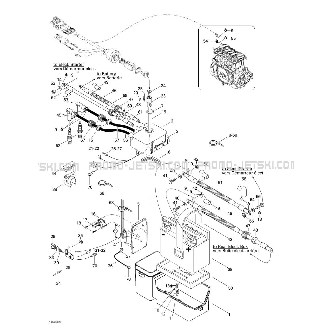 Below, find all references of original and spare parts for 10- Rear Electrical Box for your Sea-Doo GTI, 5836 5841, 1998 1998 and available at Promo-jetski.com.