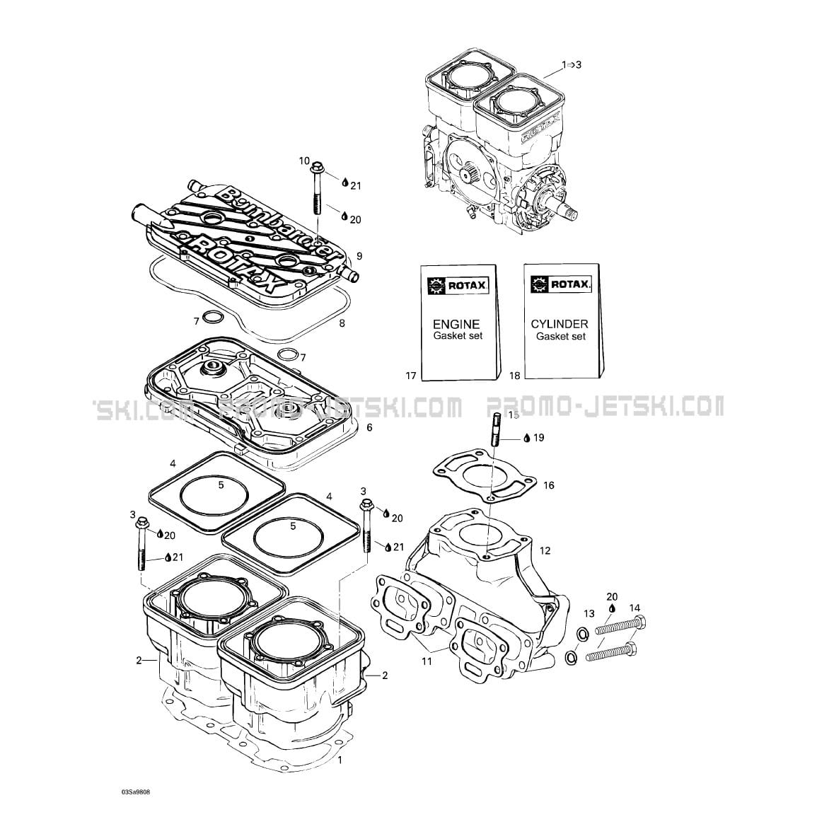 Below, find all references of original and spare parts for 01- Cylinder, Exhaust Manifold for your Sea-Doo GTS, 5819, 1998 1998 and available at Promo-jetski.com.
