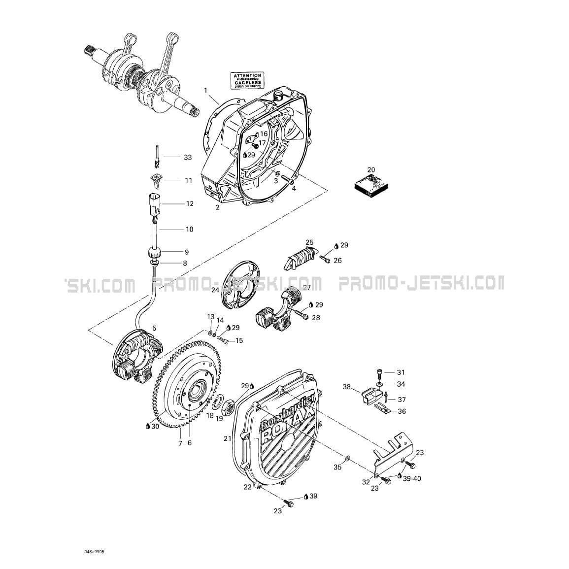 Below, find all references of original and spare parts for 03- Magneto for your Sea-Doo GTI, 5884 5885, 1999 1999 and available at Promo-jetski.com.