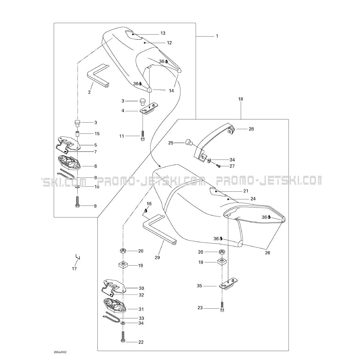 Below, find all references of original and spare parts for 09- Seat And Engine Cover for your Sea-Doo GTI, 5647 5657, 2000 2000 and available at Promo-jetski.com.