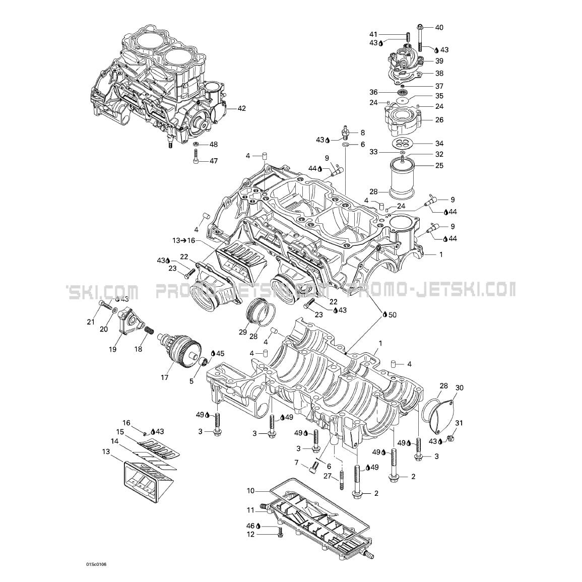 Below, find all references of original and spare parts for 01- Crankcase, Reed Valve for your Sea-Doo GTX DI, 5528 5529 5540 5541, 2001 2001 and available at Promo-jetski.com.