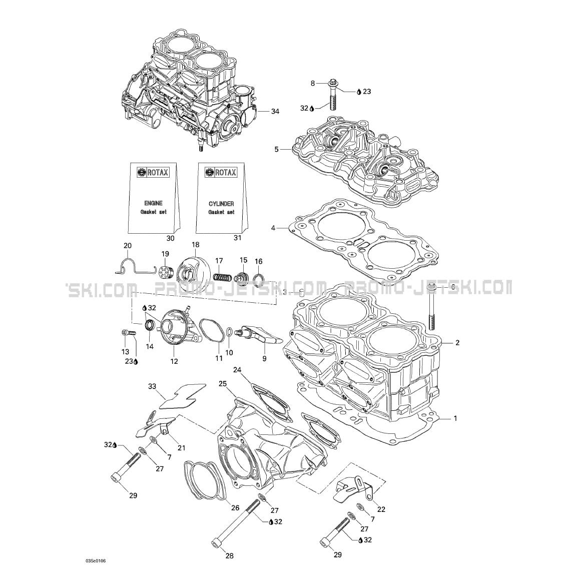 Below, find all references of original and spare parts for 01- Cylinder, Exhaust Manifold for your Sea-Doo GTX DI, 5528 5529 5540 5541, 2001 2001 and available at Promo-jetski.com.