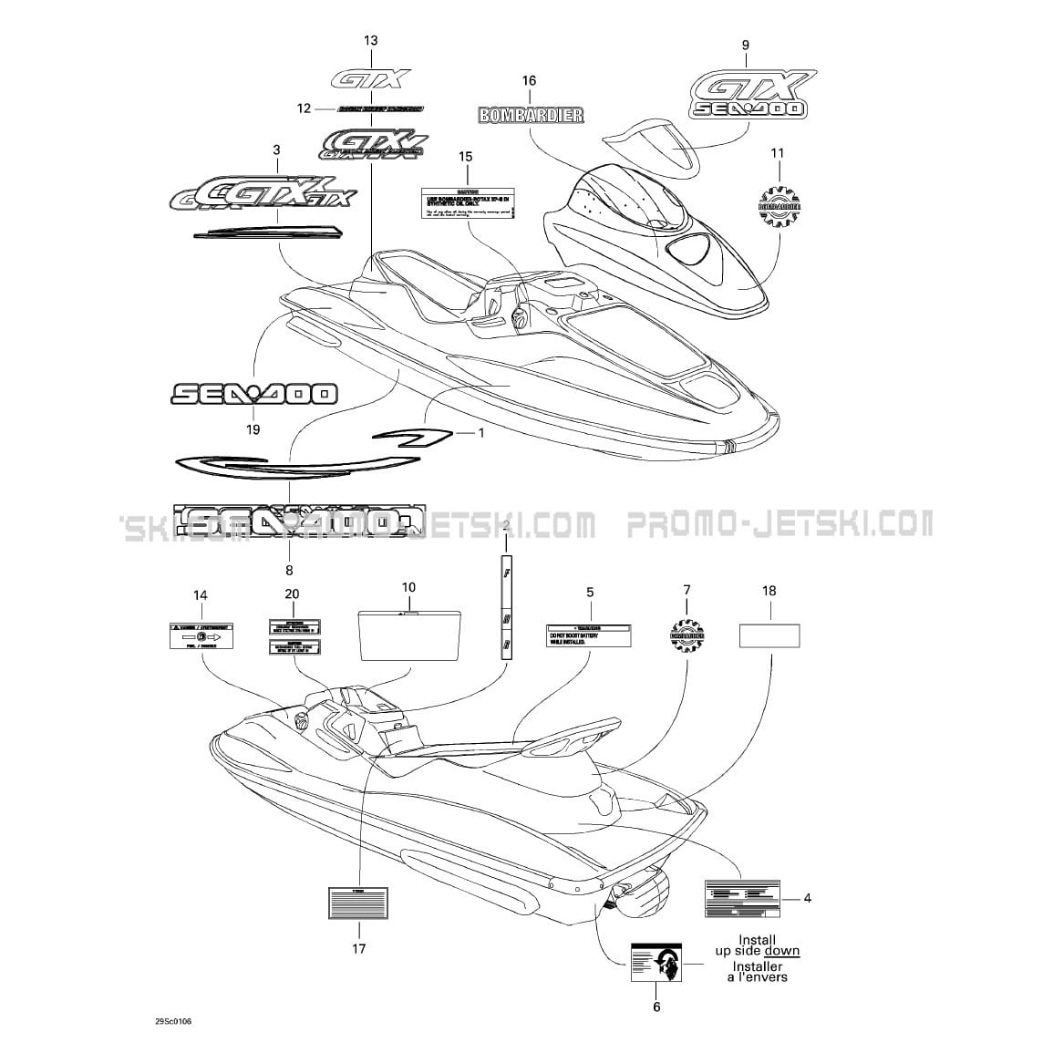 Below, find all references of original and spare parts for 09- Decals for your Sea-Doo GTX DI, 5528 5529 5540 5541, 2001 2001 and available at Promo-jetski.com.