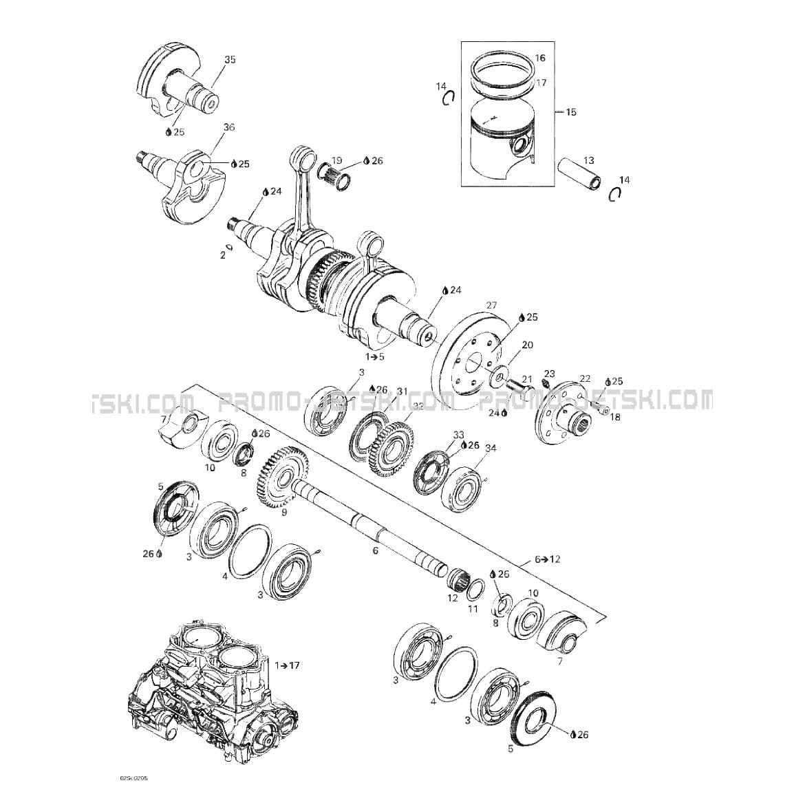 Below, find all references of original and spare parts for 01- Crankshaft And Pistons for your Sea-Doo GTX, 5587 5588, 2002 2002 and available at Promo-jetski.com.