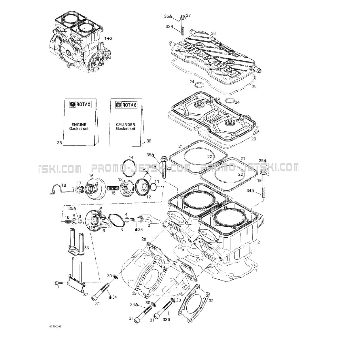Below, find all references of original and spare parts for 01- Cylinder, Exhaust Manifold for your Sea-Doo GTI LE RFI, 6103 6104, 2003 2003 and available at Promo-jetski.com.