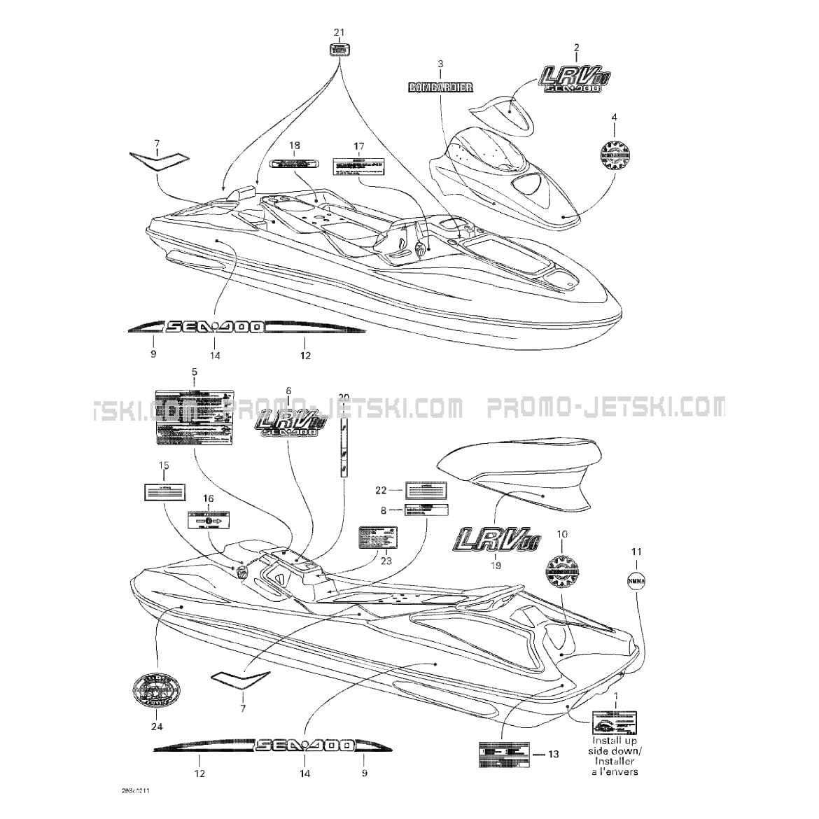 Below, find all references of original and spare parts for 09- Decals for your Sea-Doo LRV DI, 5771, 2003 2003 and available at Promo-jetski.com.