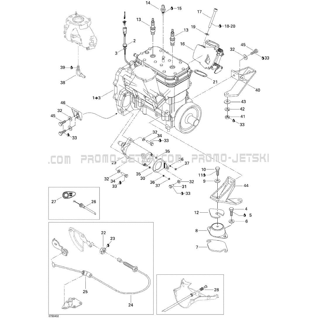 Below, find all references of original and spare parts for 01- Engine for your Sea-Doo GTI LE, 2004 2004 and available at Promo-jetski.com.
