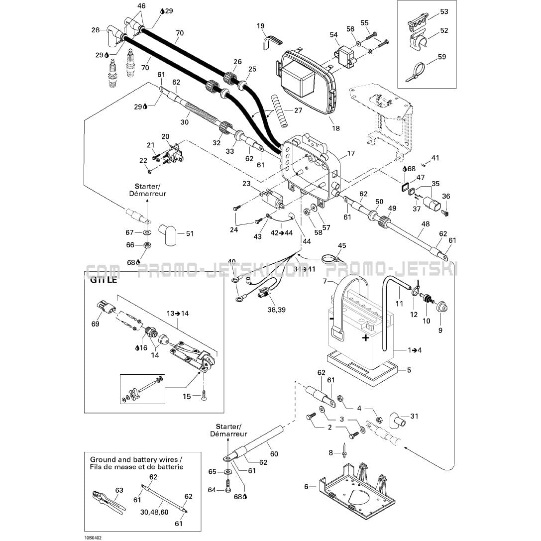 Spare references for 10- Rear Electrical Box of GTI LE, 2004 are generally delivered within the time indicated, however, and depending on certain parts for jet ski Sea-Doo, we draw your attention to the supply times as we are dependent on Sea-Doo and we always do our best to have the parts of your Sea-Doo GTI LE, 2004 10- Rear Electrical Box delivered to you as soon as possible. We also draw your attention to the fact that Sea-Doo can at any time provide us with a different replacement part number compatible with your 10- Rear Electrical Box of GTI LE, 2004.
