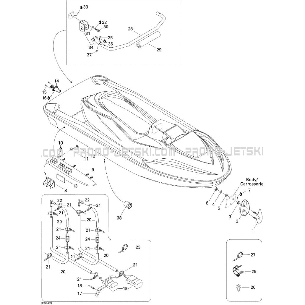 Below, find all references of original and spare parts for 09- Hull for your Sea-Doo GTI LE RFI, 2004 2004 and available at Promo-jetski.com.