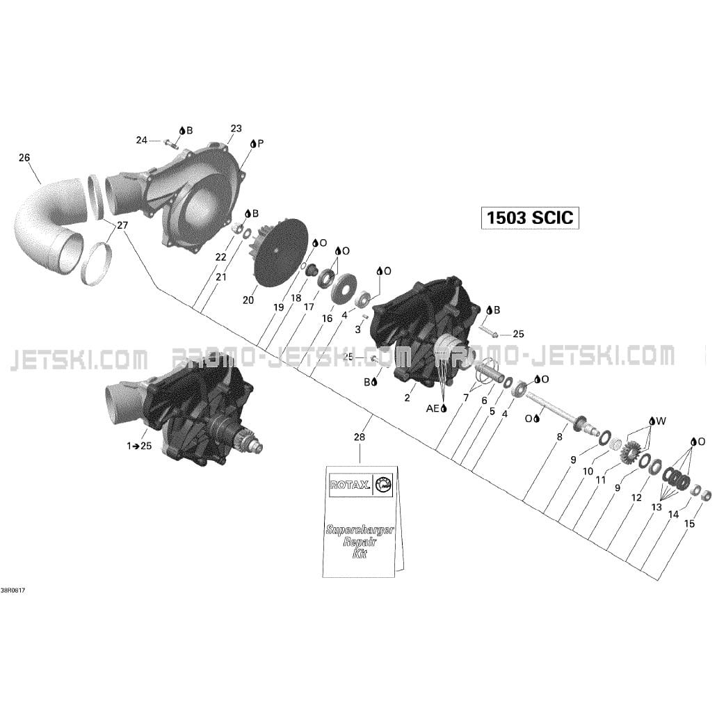 Spare references for 02- Supercharger V1 Sea-doo of GTX 215, 2008 are generally delivered within the time indicated, however, and depending on certain parts for jet ski Sea-Doo, we draw your attention to the supply times as we are dependent on Sea-Doo and we always do our best to have the parts of your Sea-Doo GTX 215, 2008 02- Supercharger V1 Sea-doo delivered to you as soon as possible. We also draw your attention to the fact that Sea-Doo can at any time provide us with a different replacement part number compatible with your 02- Supercharger V1 Sea-doo of GTX 215, 2008.