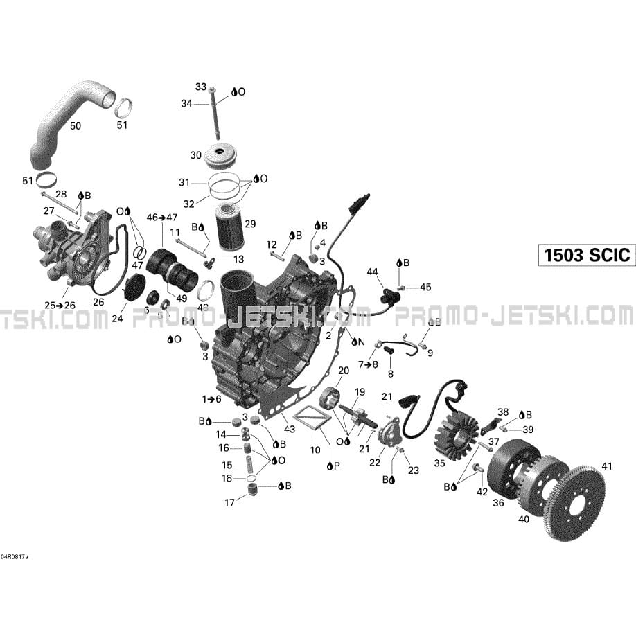 Below, find all references of original and spare parts for 03- PTO Cover And Magneto V1 Sea-Doo for your Sea-Doo GTX 215, 2008 2008 and available at Promo-jetski.com.