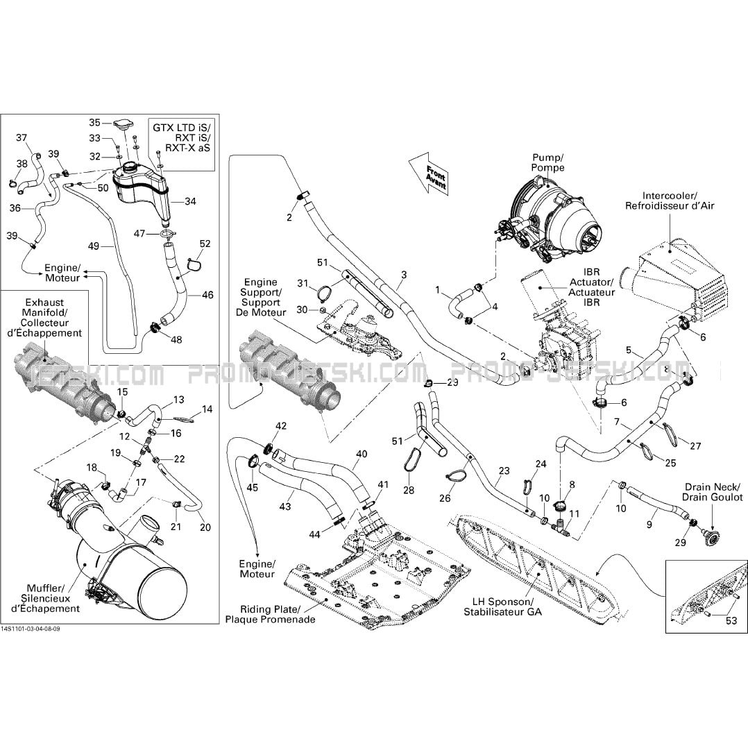 Below, find all references of original and spare parts for 01- Cooling System for your Sea-Doo RXT iS 260, 2011 2011 and available at Promo-jetski.com.
