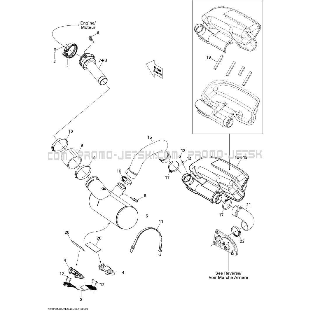 Below, find all references of original and spare parts for 01- Exhaust System for your Sea-Doo RXT iS 260, 2011 2011 and available at Promo-jetski.com.
