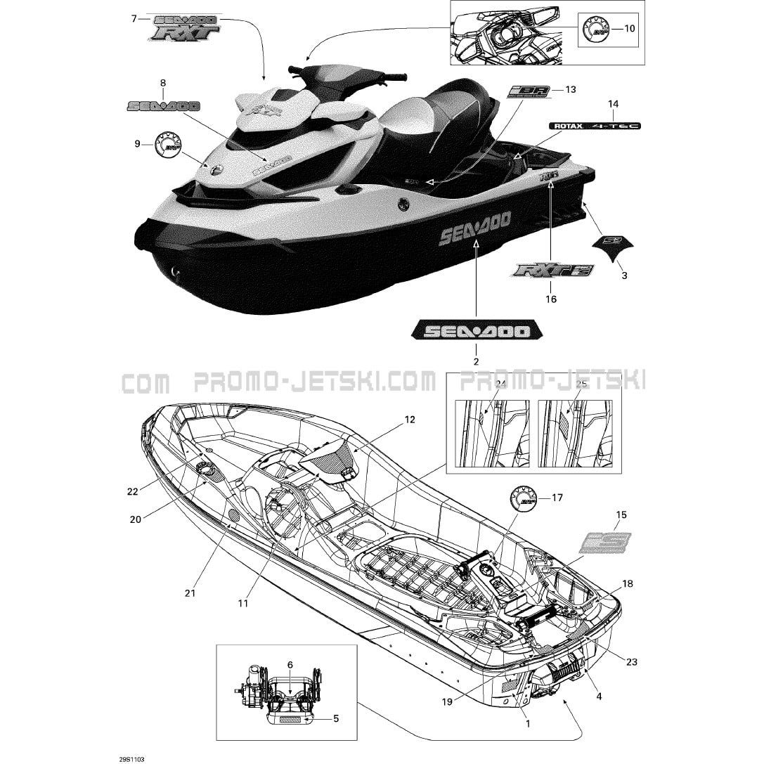 Below, find all references of original and spare parts for 09- Decals for your Sea-Doo RXT iS 260, 2011 2011 and available at Promo-jetski.com.