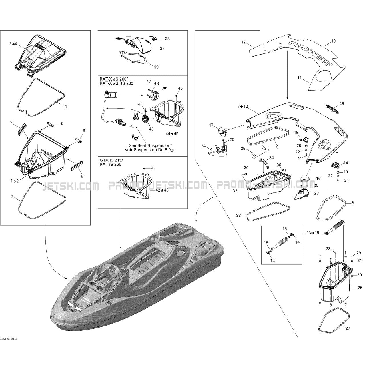 Below, find all references of original and spare parts for 09- Storage Compartments for your Sea-Doo RXT iS 260, 2011 2011 and available at Promo-jetski.com.