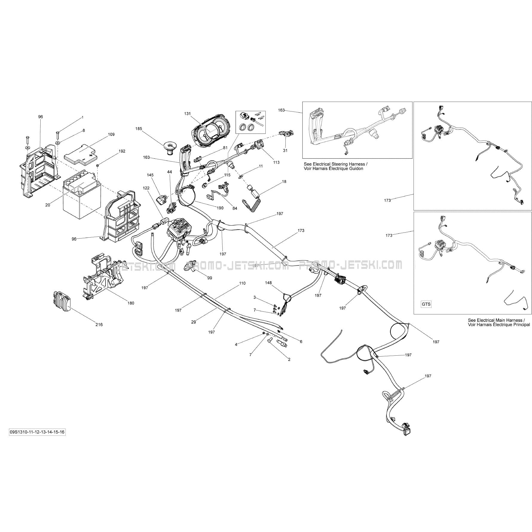 Below, find all references of original and spare parts for 10- Electrical System for your Sea-Doo GTS 130 & Rental, 2013 2013 and available at Promo-jetski.com.