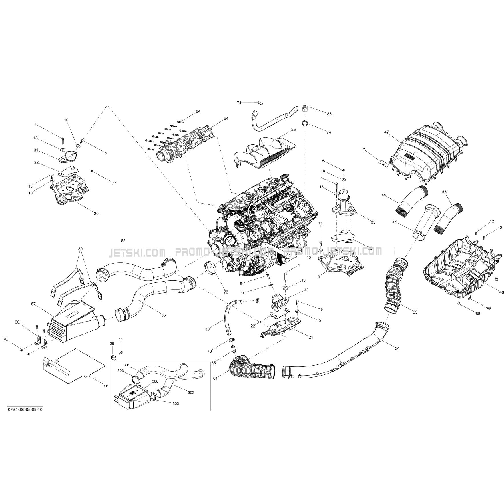 Below, find all references of original and spare parts for 01- Engine _07S1406 for your Sea-Doo RXT-X 260 & RS. 2014 2014 and available at Promo-jetski.com.