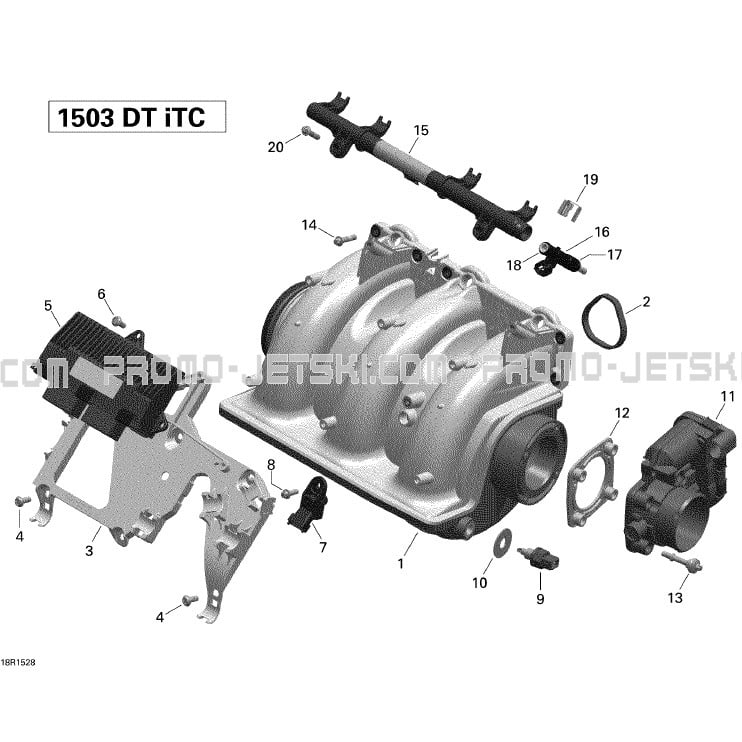 Below, find all references of original and spare parts for 02- Air Intake Manifold And Throttle Body _18R1528 for your Sea-Doo GTS 130 & Rental, 2015 2015 and available at Promo-jetski.com.