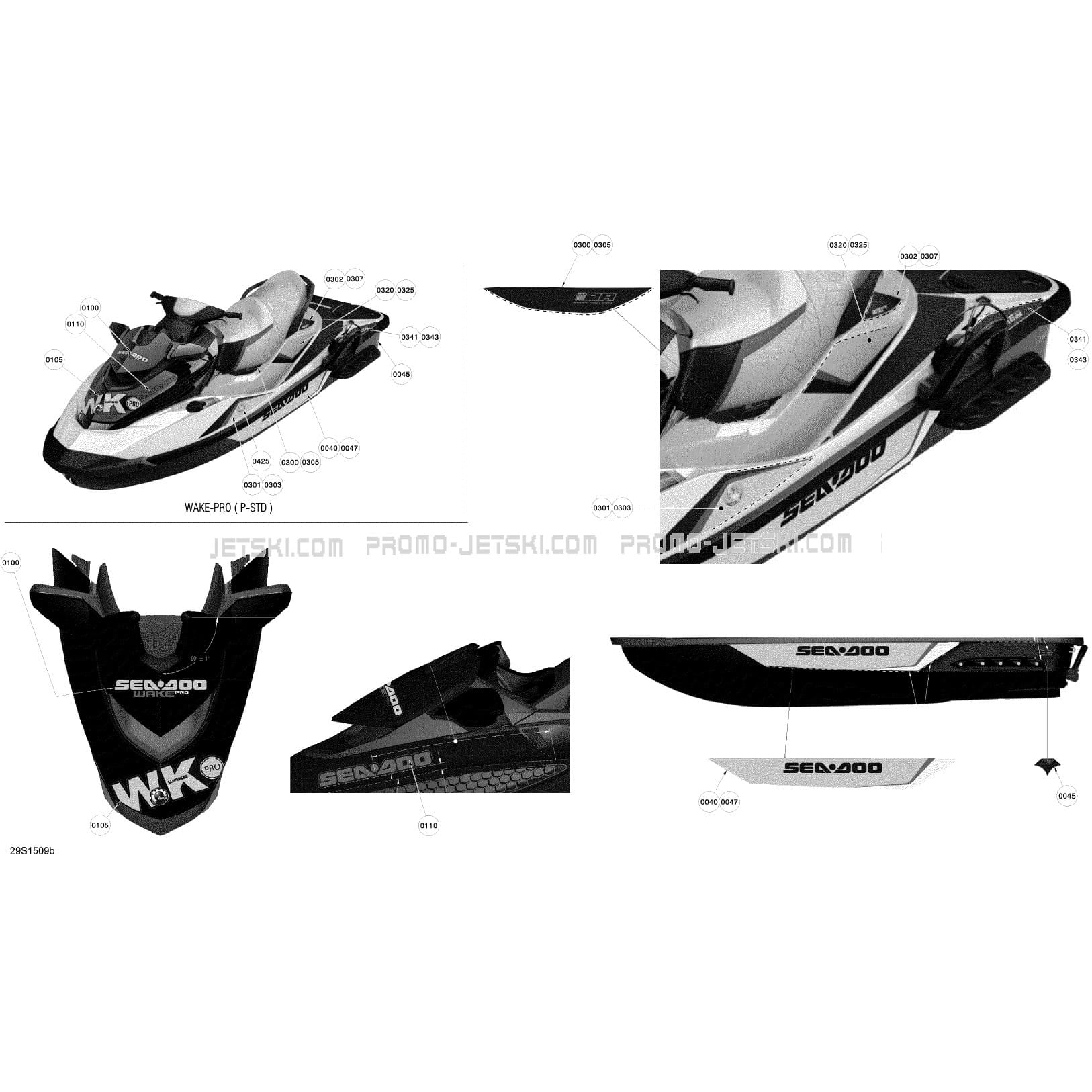 Below, find all references of original and spare parts for 09- Decals _29S1509b for your Sea-Doo WAKE PRO 215, 2015 2015 and available at Promo-jetski.com.