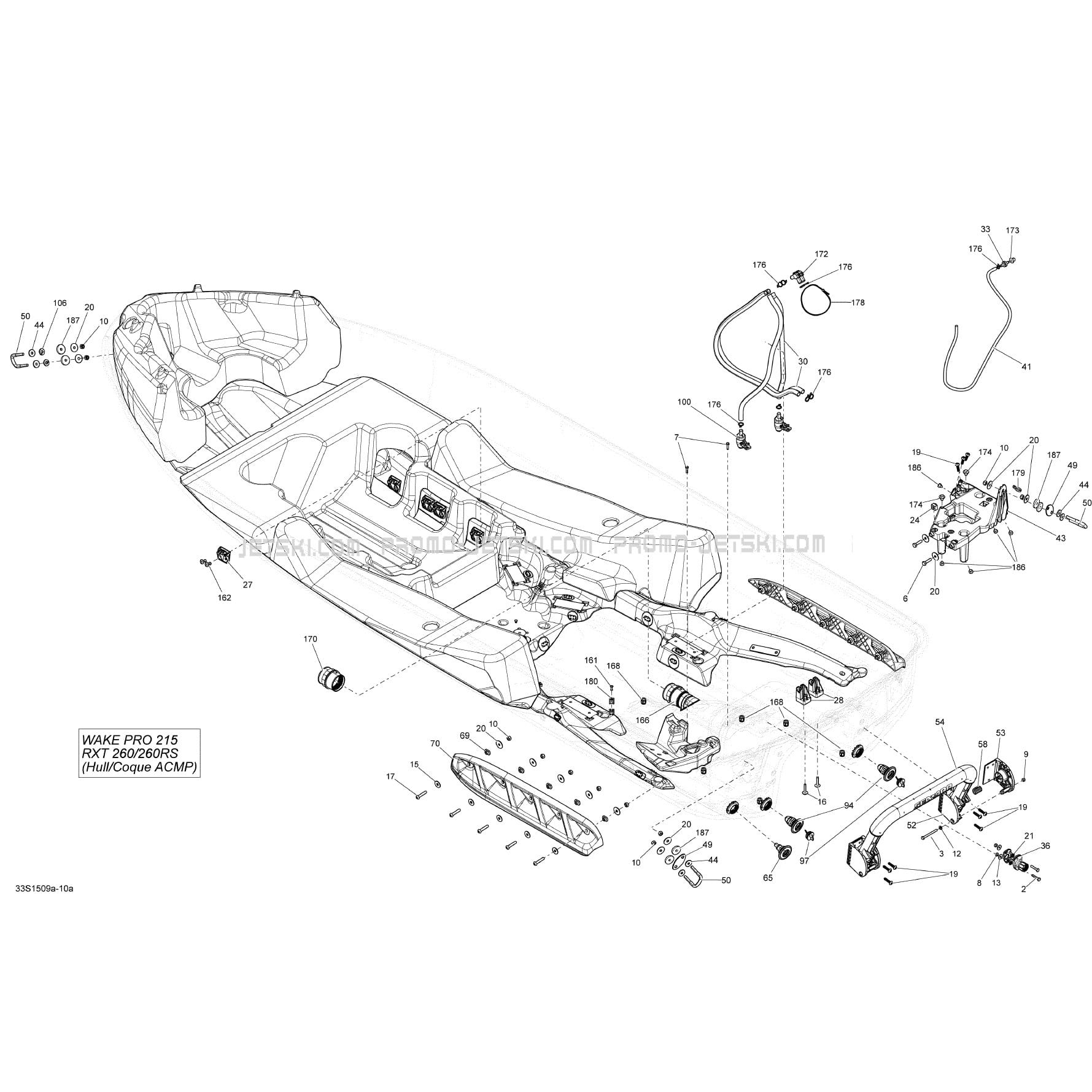 Below, find all references of original and spare parts for 09- Hull ACMP_33S1509a for your Sea-Doo WAKE PRO 215, 2015 2015 and available at Promo-jetski.com.