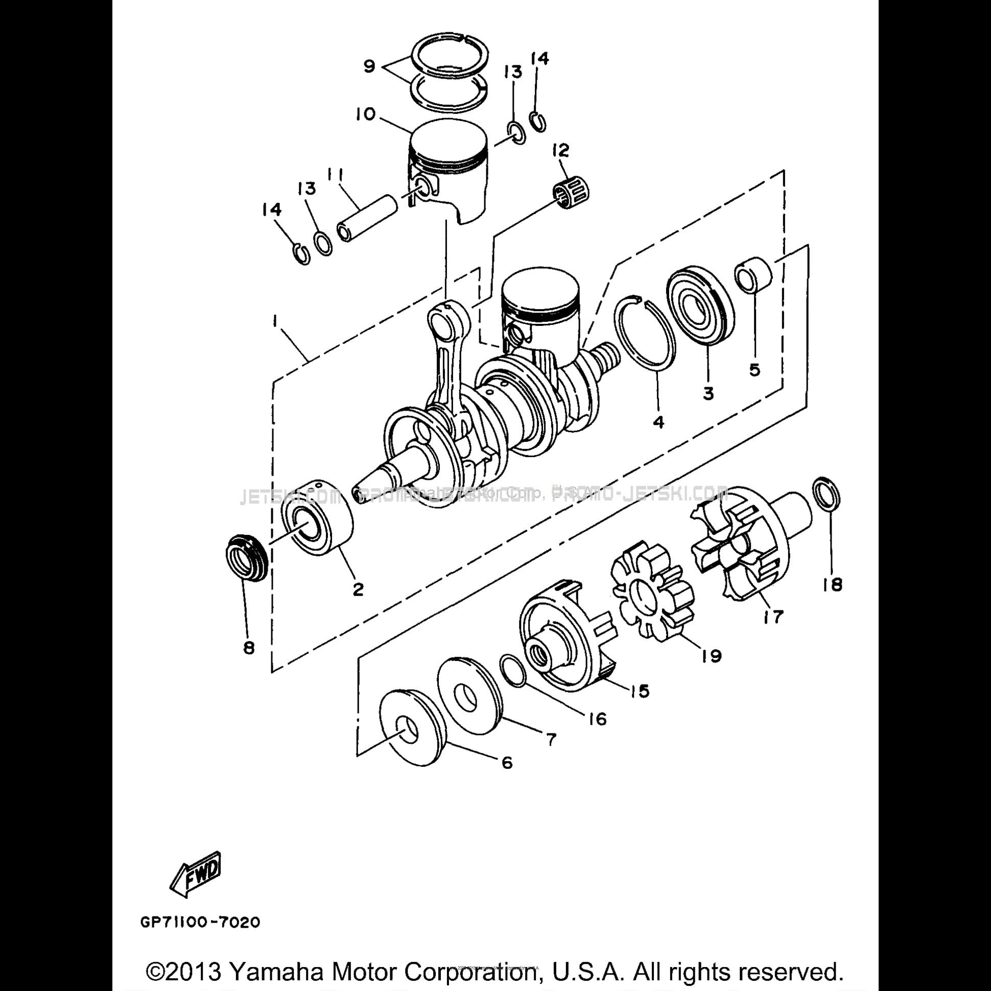 Below, find all references of original and spare parts for CRANKSHAFT PISTON for your Yamaha WAVE RUNNER GP760 - GP760V - 1997 1997 WaveRunner and available at Promo-jetski.com.